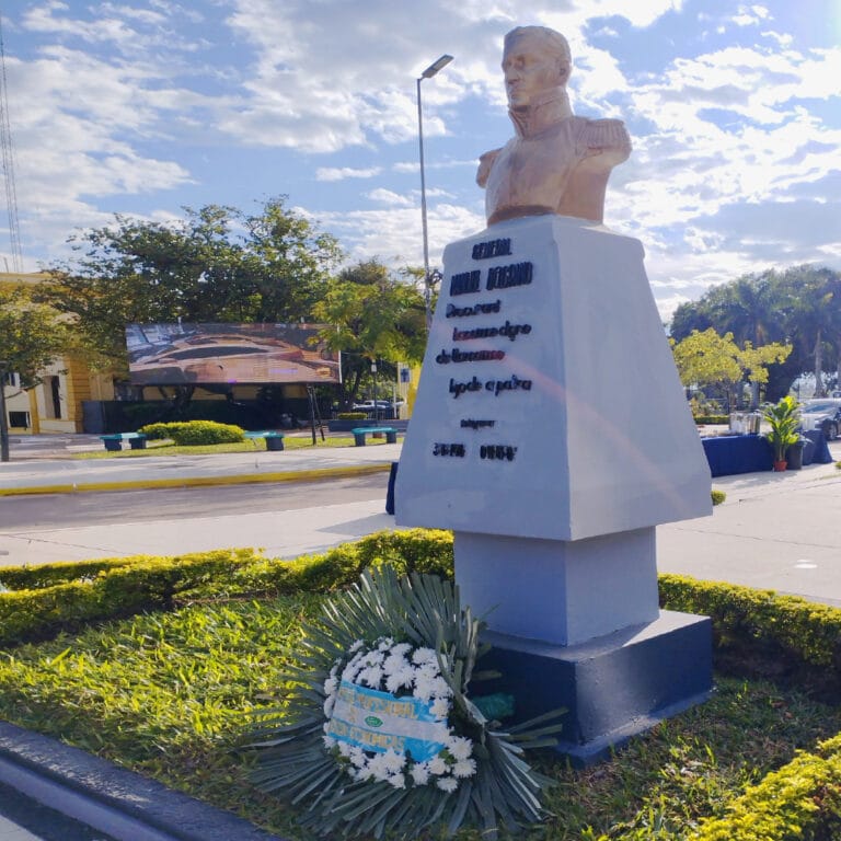 Como es tradición, se realizó una ofrenda floral al pie del busto del prócer, reafirmando nuestro compromiso con los valores que él representó: la ética, la educación, el compromiso social y el amor a la Patria.