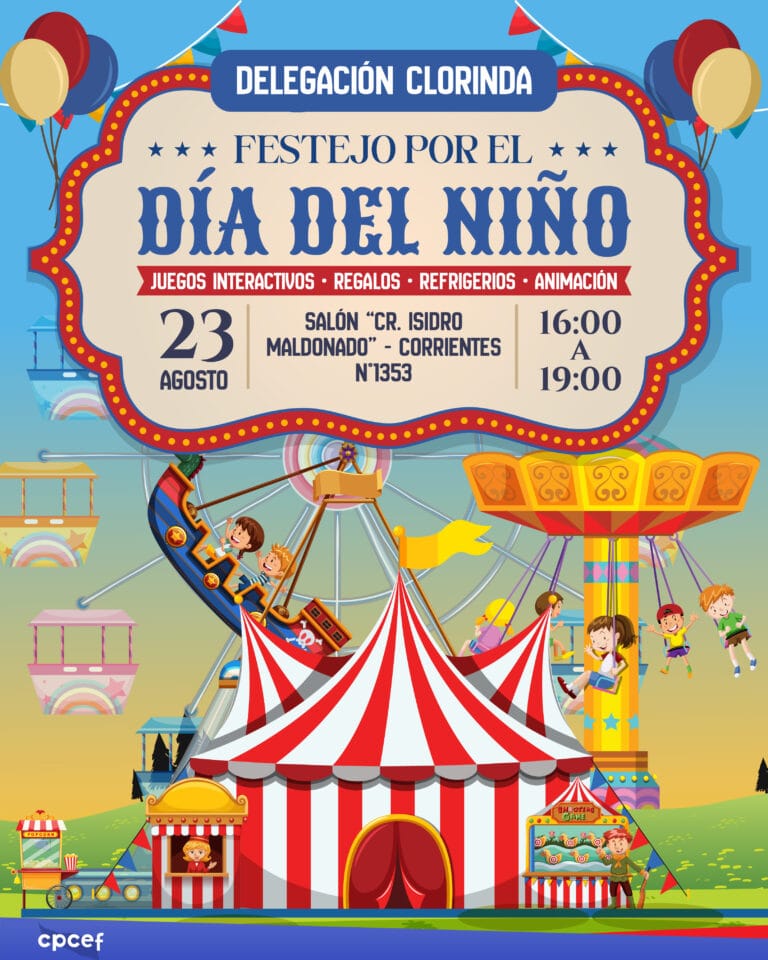 El sábado 23 de agosto, los esperamos en el Salón «Cr. Isidro Maldonado» de la Delegación Clorinda del CPCEF, en Corrientes N°1353, para celebrar con los más pequeños.