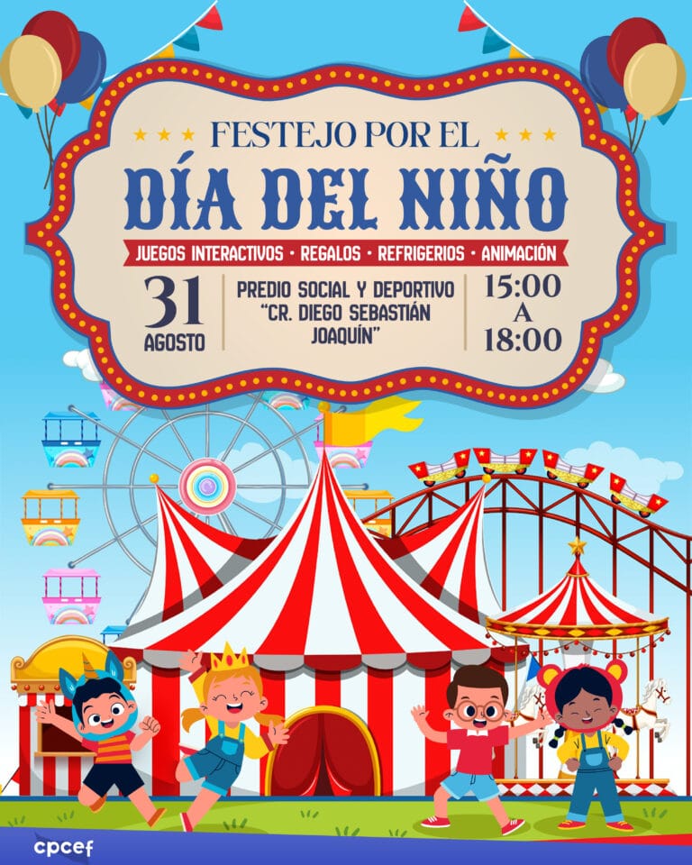 El domingo 31 de agosto, los esperamos en el Predio Social y Deportivo Cr. Diego Sebastián Joaquín para celebrar a lo grande con los más pequeños.