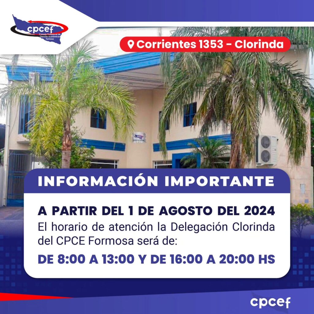 Informamos que a partir del 01 de agosto, el horario de atención de la Delegación Clorinda del CPCEF será: De lunes a viernes De 08:00 a 13:00 De 16:00 a […]