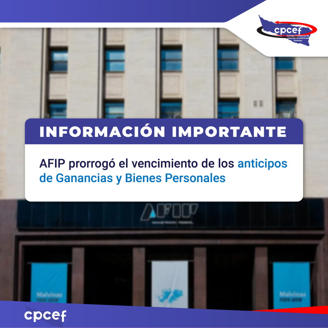 AFIP prorrogó los anticipos de Bienes Personales y Ganancias