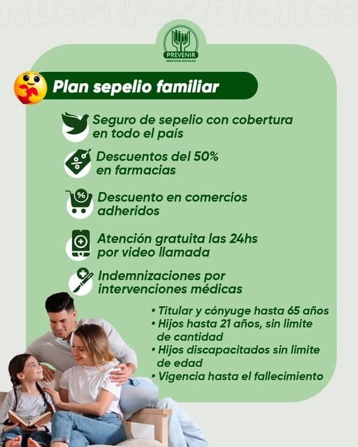 10% DE DESCUENTO: En coberturas de Plan Básico Familiar – Básico Individual – Sepelio Familiar y Sepelio Individual