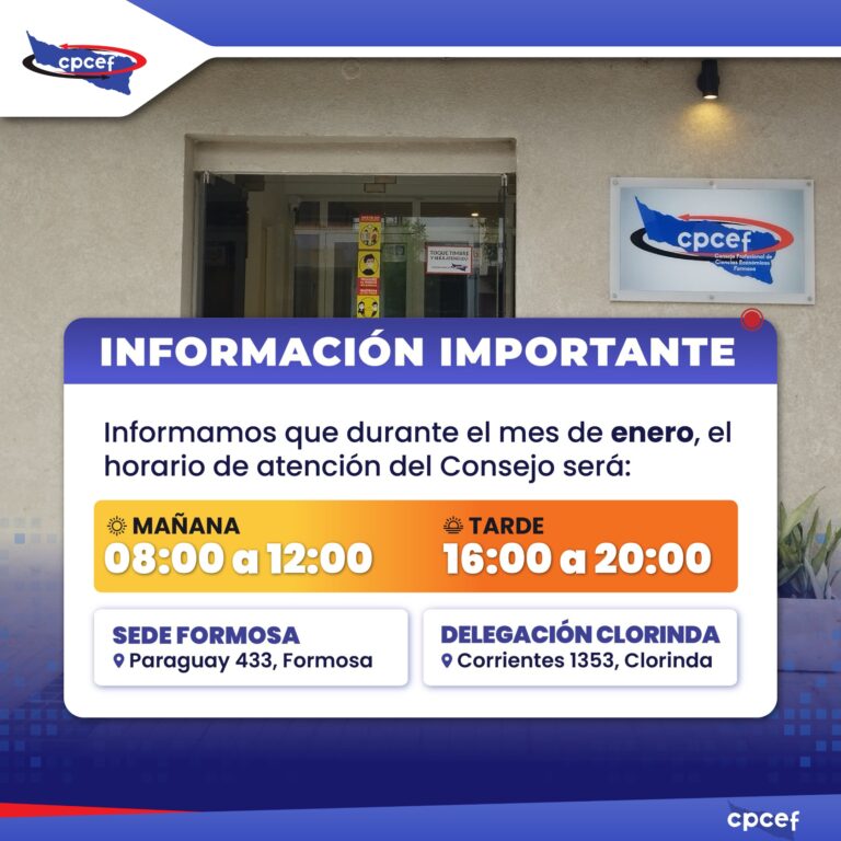 Les informamos que durante el mes de enero, el horario de atención del Consejo será: