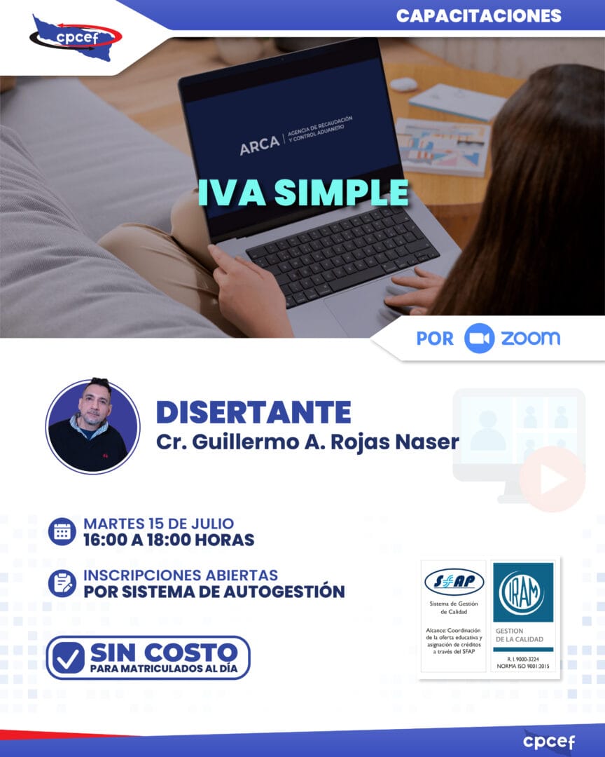 TEMARIO: 1- Régimen de transición. • Régimen de transición (06/2025 a 10/2025) y cronograma. 2- Introducción IVA SIMPLE. • Objetivos de ARCA con IVA SIMPLE. • ¿Quiénes deben utilizarlo? • […]